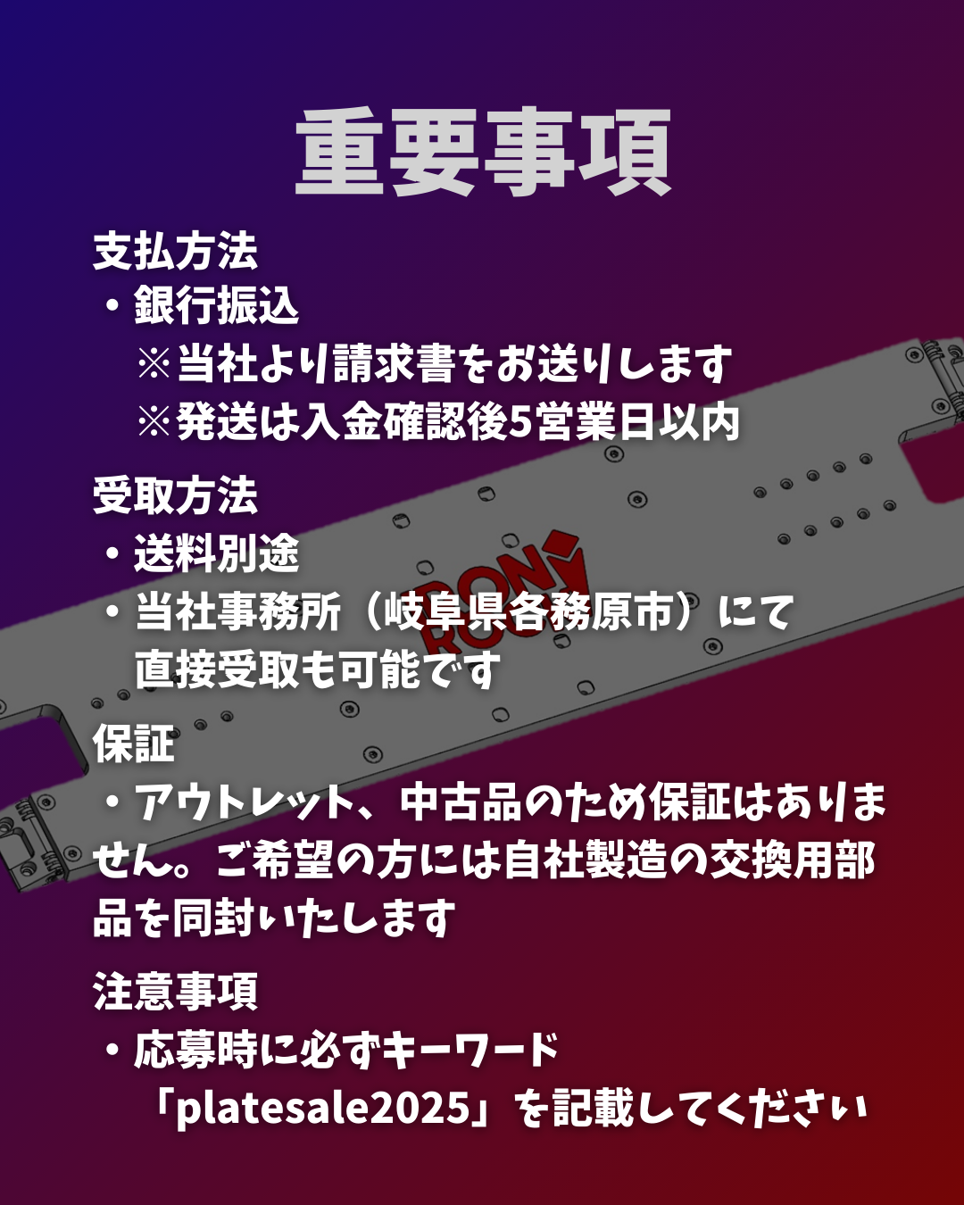 ・支払方法:銀行振込(振込手数料はお客様の方でご負担ください)